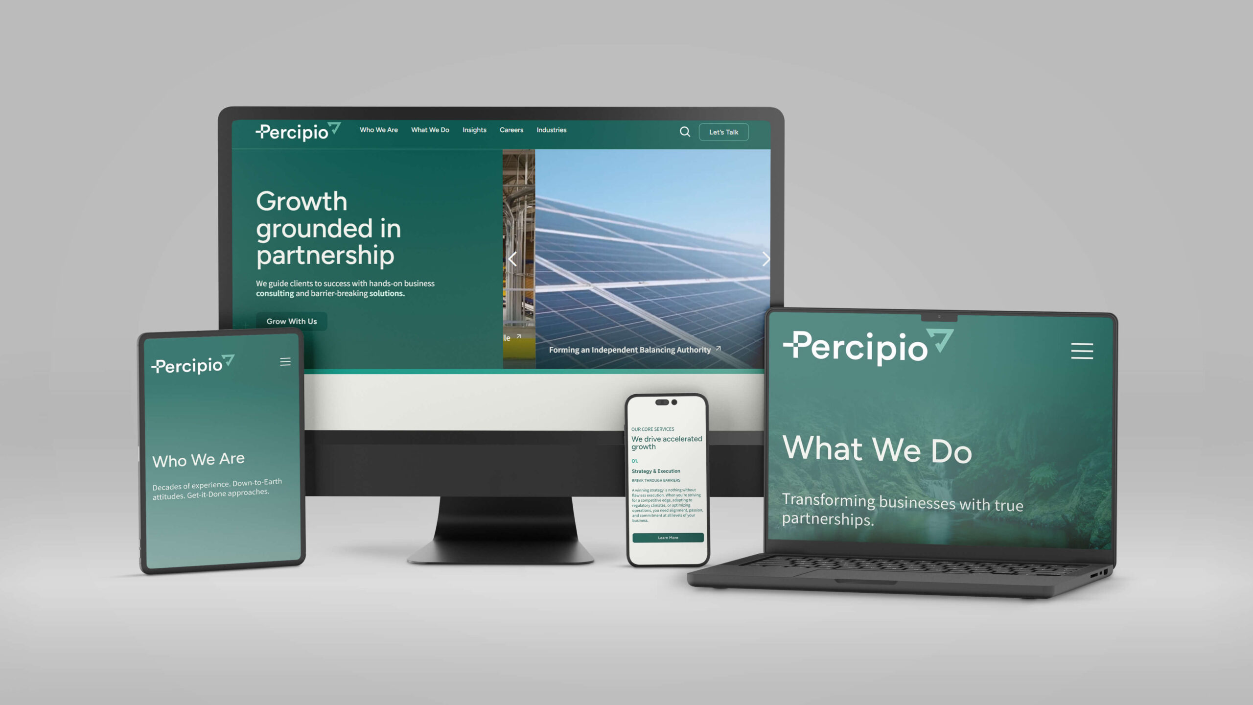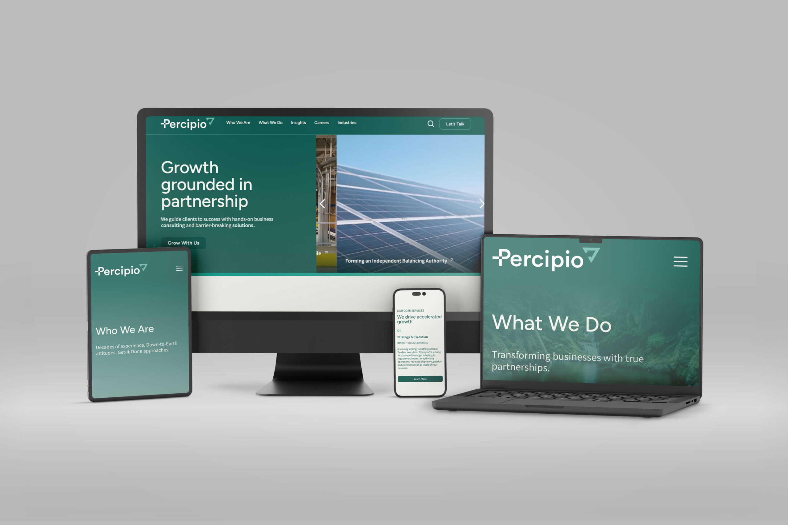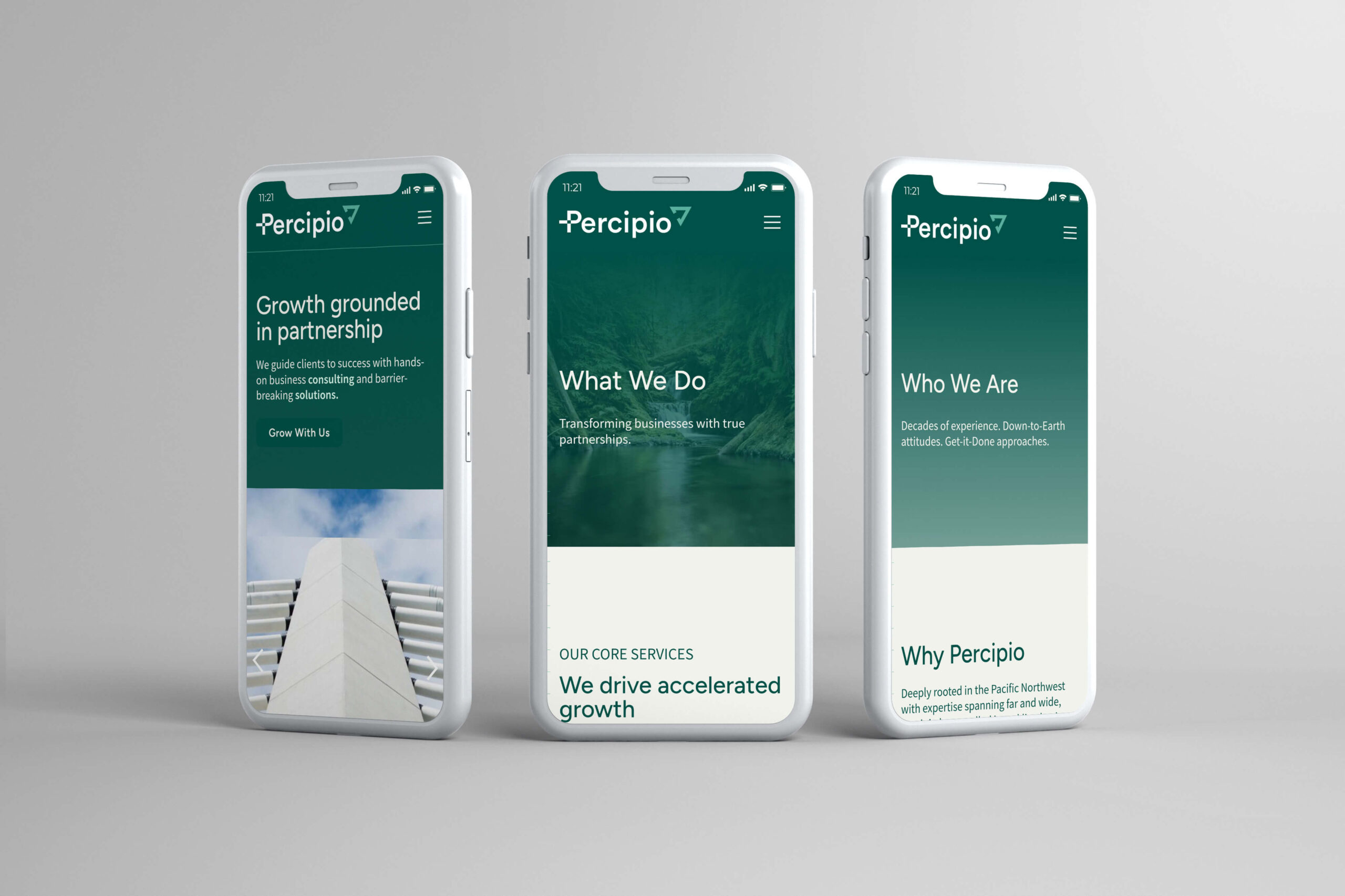Percipio Group is a Portland-based consulting firm dedicated to accelerating business growth while fostering long-term partnerships. With a sharp focus on the Pacific Northwest, the firm helps clients break down barriers through strong leadership and strategic solutions. Their ethos—welcoming, straightforward, and steadfast—defines their approach to business, their clients, and their community. To better position themselves in a competitive consulting landscape, Percipio Group partnered with Watson Creative to refine their brand identity, messaging, and digital experience.