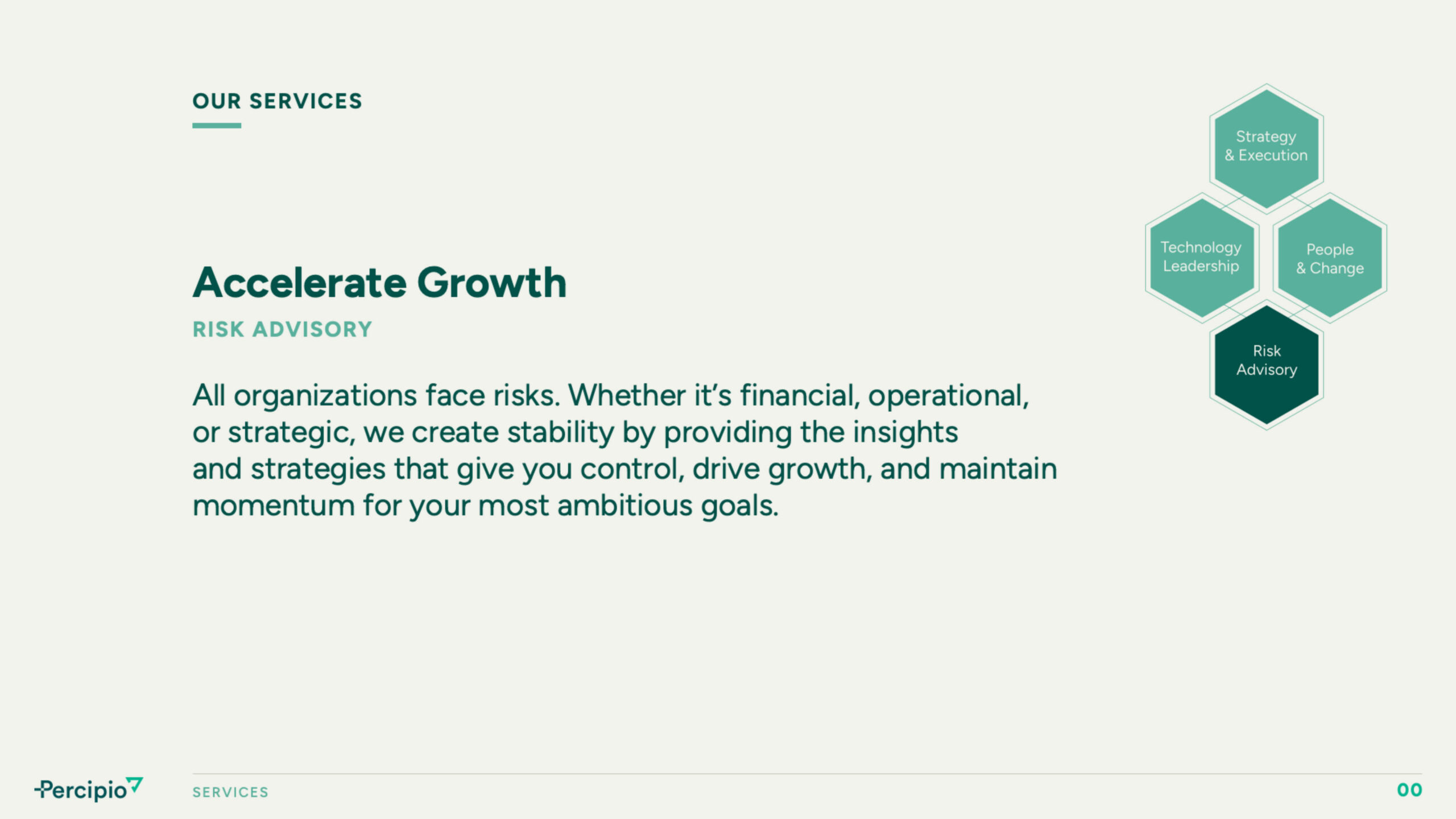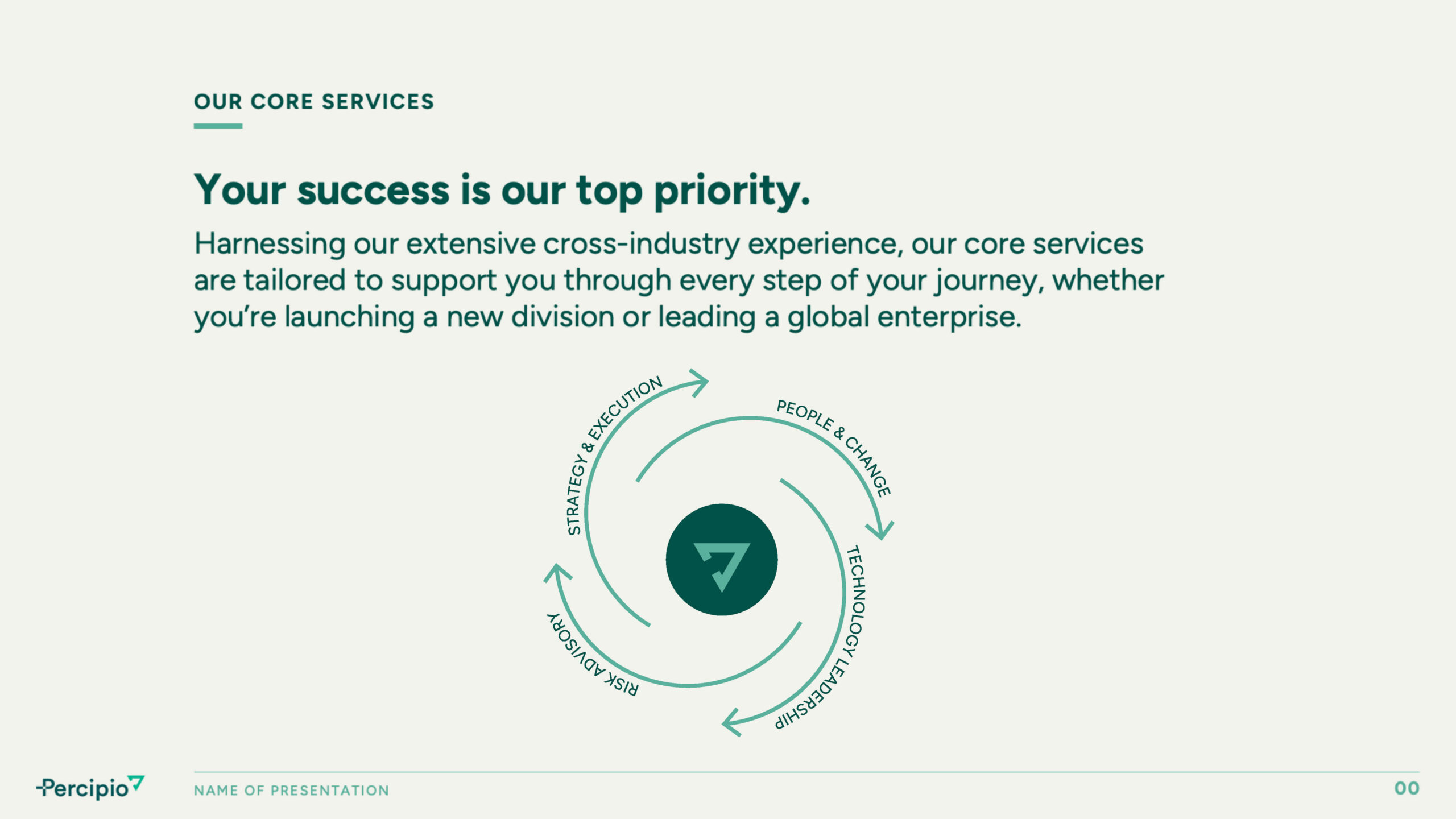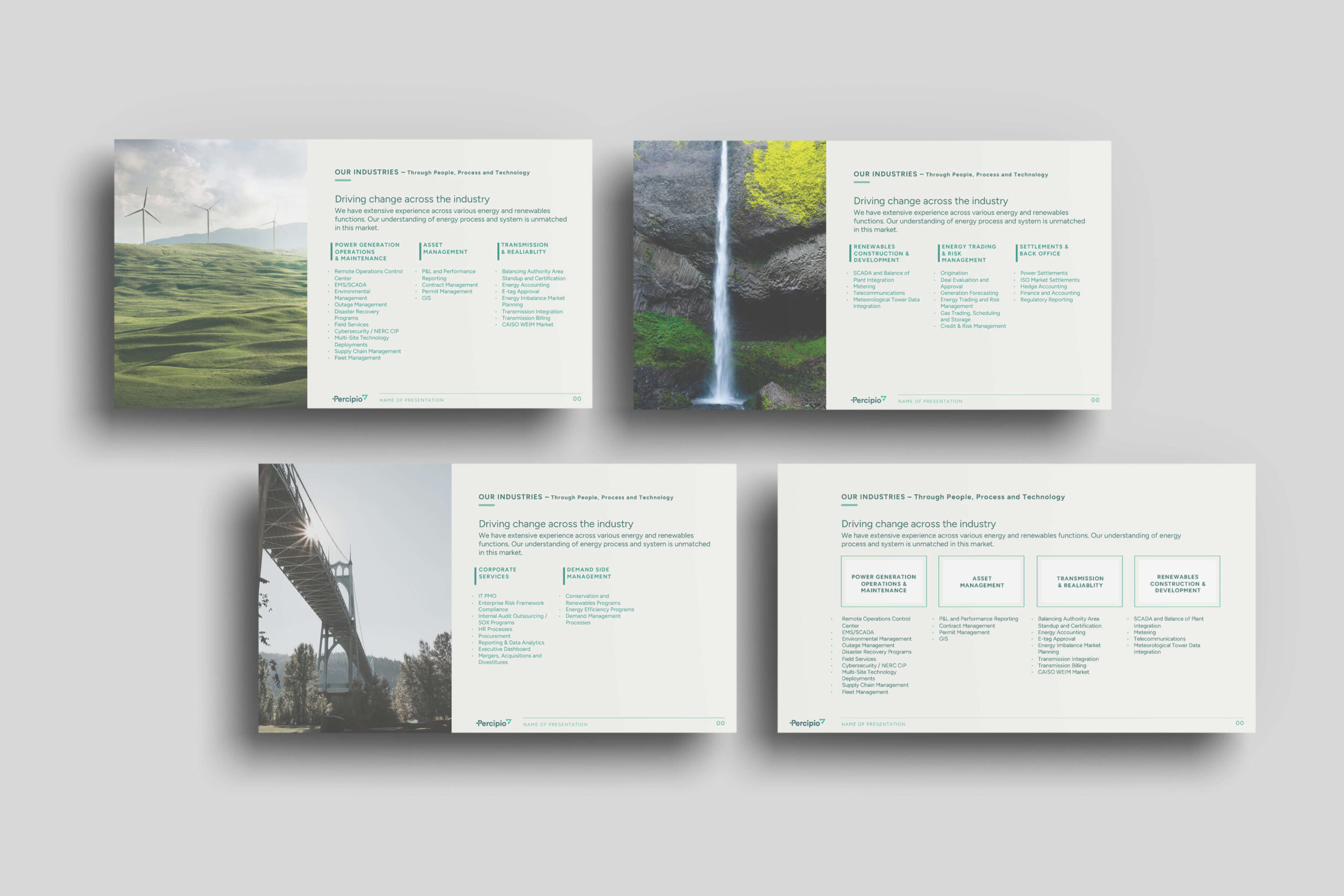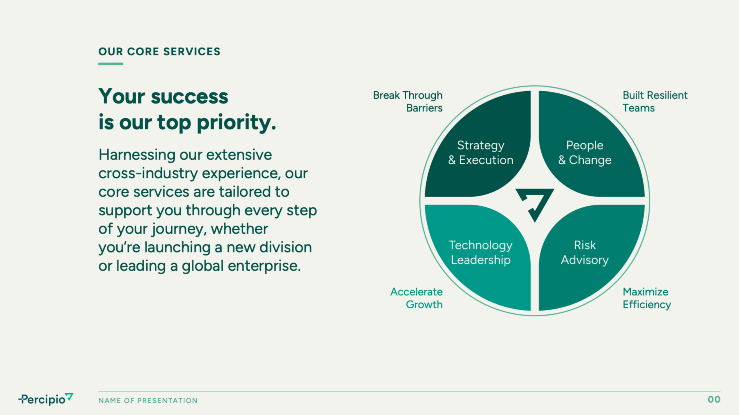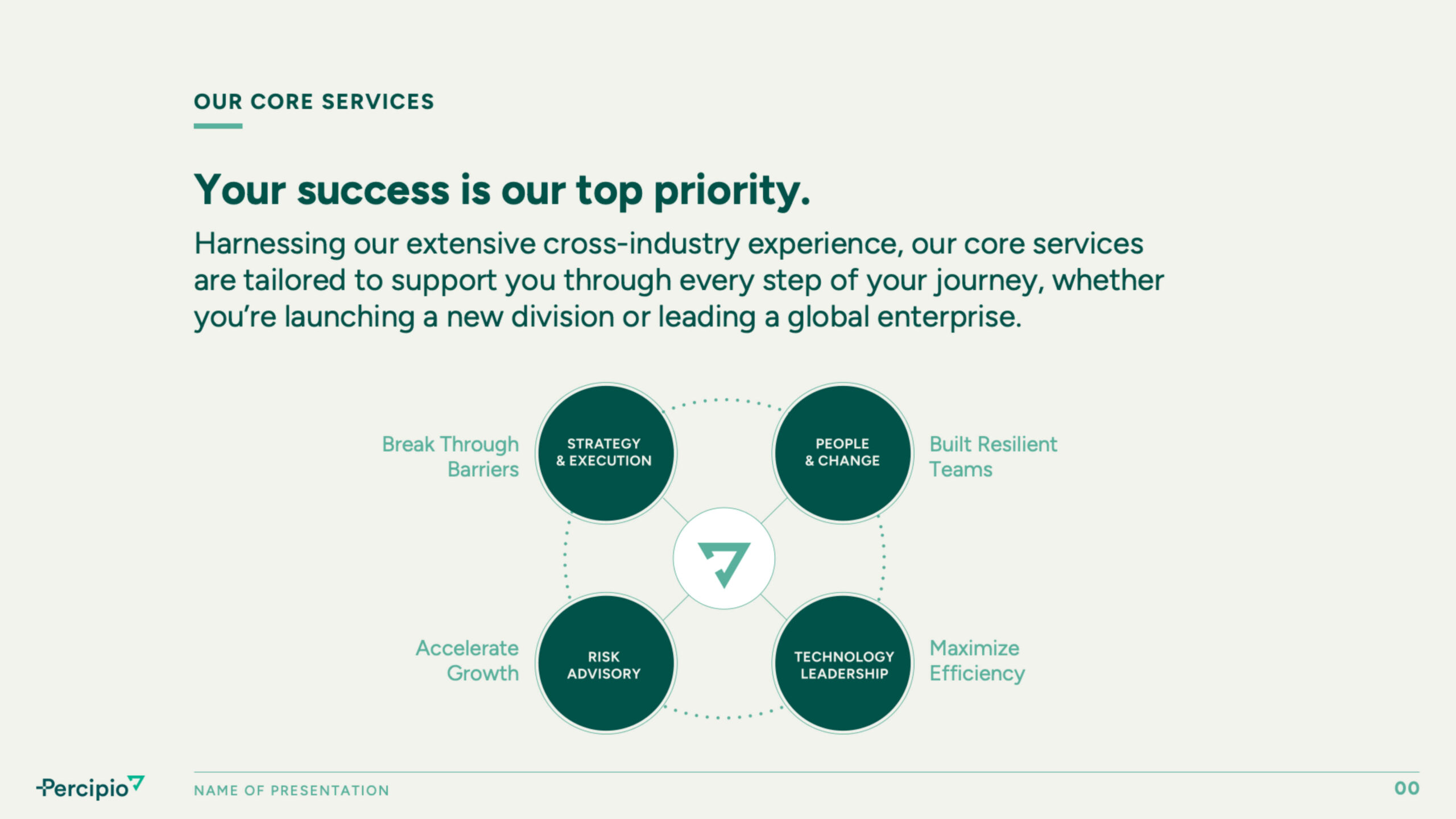 Beyond digital updates, Watson developed a brand voice that aligned with Percipio Group’s values—grounded, intentional, and collaborative. The revised messaging ensured consistency across presentations, marketing materials, and internal communications, creating a unified brand experience. Every element was designed to reinforce trust, making it clear that Percipio Group is not just another consulting firm but a dedicated partner in business transformation.
